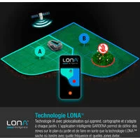 La technologie LONA permet à la tondeuse robot de créer une carte du jardin, de définir des zones et des intensités de tonte, de protéger des zones du jardin et de suivre la tondeuse. Toutes ces fonctionnalités sont disponibles via l’application smart App.